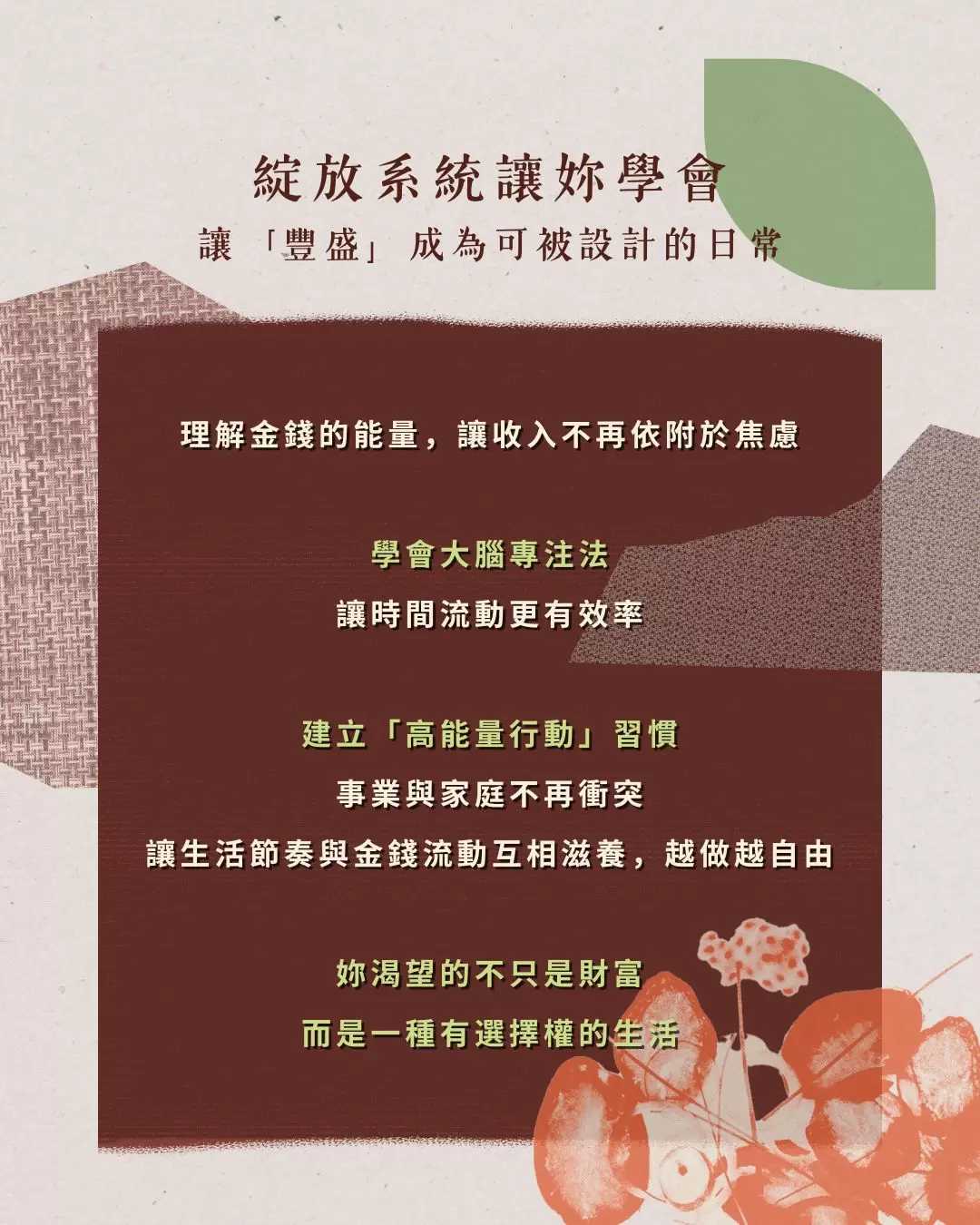 產後讓變美成為一種流動,讓優雅成為自然的狀態,讓豐盛成為可被設計的日常